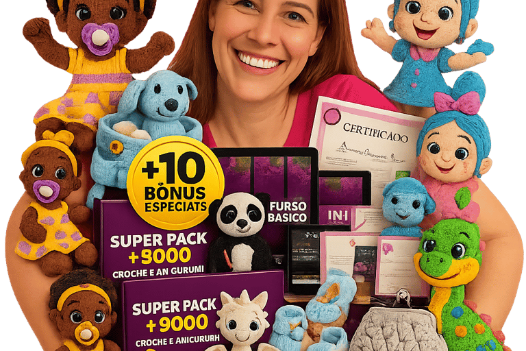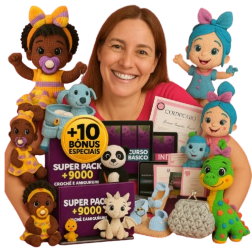 Você terá acesso a um curso completo e mais de 8.000 mil Receitas de Amigurumi e mais vídeos aulas passo a passo juntos com todos os bônus citados a cima…