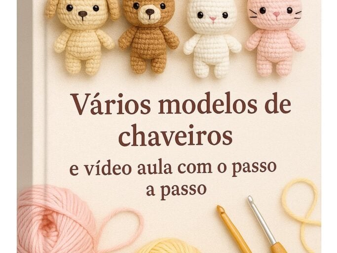 Você vai receber diversas receitas dos mais lindos chaveiros, além de vídeos aulas com todo o passo a passo.
